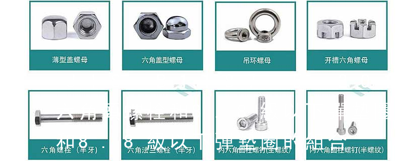 名稱: 1.機螺釘 2.自攻螺釘 3.鉆尾螺釘 4.墻板釘 5.纖維板釘 6.木螺釘7.六角木螺釘 8.不脫出螺釘 9.組合螺釘 10.微型螺釘 11.家具螺釘 12.電子螺釘 頭型: 1.六角頭(hexagon head) 2.六角頭法蘭面(hexagon head with